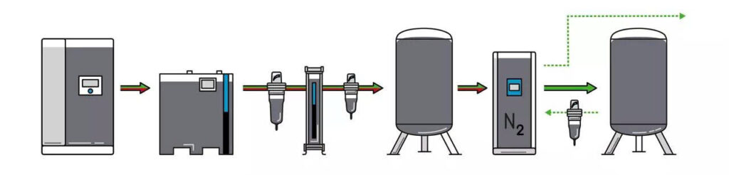 Sơ đồ bố trí điển hình của hệ thống máy tạo khí nitơ